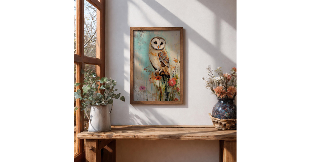 Barn Owl Wall Art Tyto Alba Framed Canvas Textured Wildlife Farmhouse Rustic Home Decor