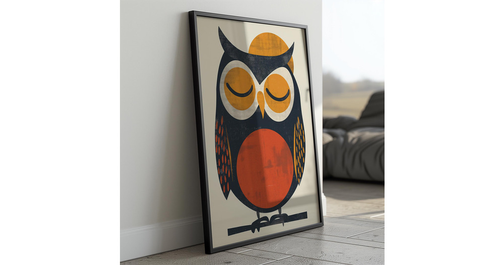 Sleepy Owl Art Print: Mid-Century Modern, Retro Boho (Digital Download)
