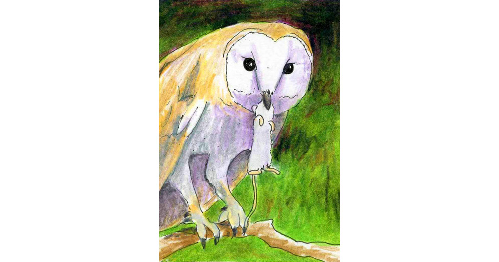 Owls, Wildlife art, Print of Original Drawing, Bird Art, Title- Barn Owl with Mouse