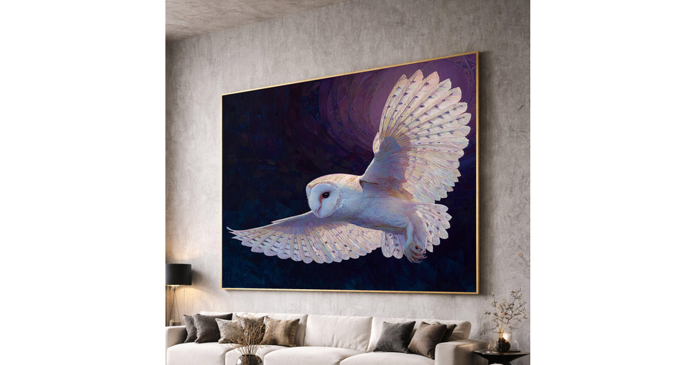 Majestic Barn Owl in Flight Canvas, Night Sky Wall Art, Wildlife Decor, Detailed Bird Illustration,
