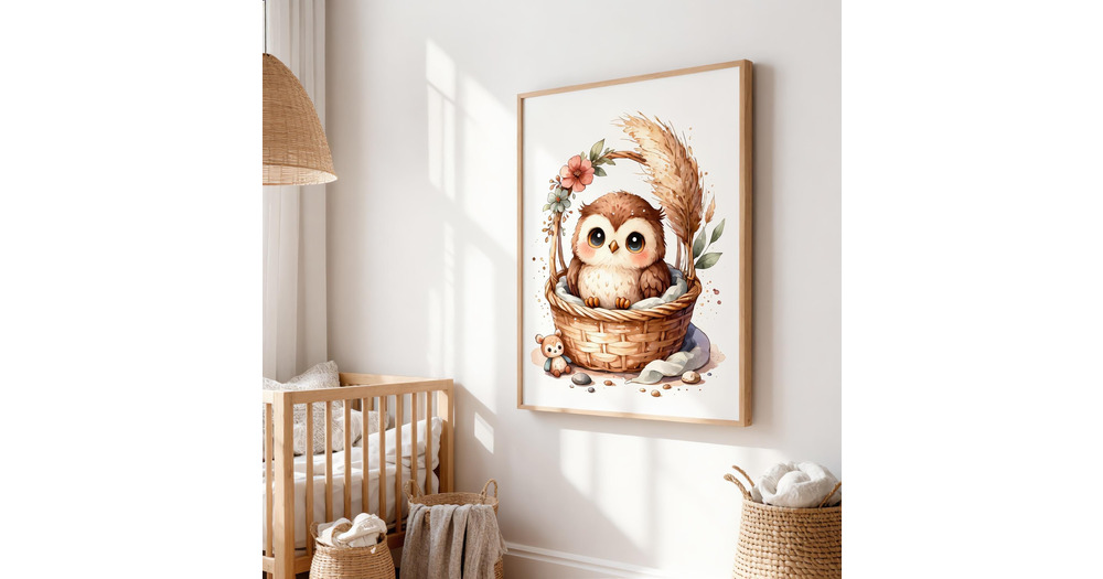 Affiche Bébé Hibou Bohème Aquarelle | Décoration Chambre Béb&eacu