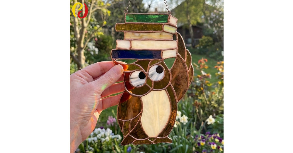 PDACE916 Book Lover Owl Stained Glass Pattern, Reading Owl Suncatcher Window Art