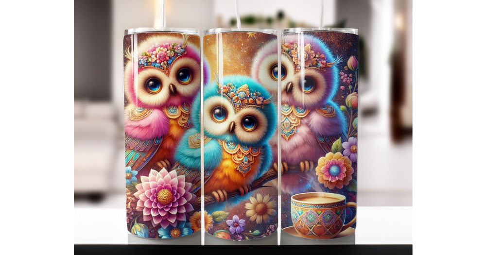 Floral Owl 20oz Tumbler Sublimation Design: Watercolor PNG (Digital Download)