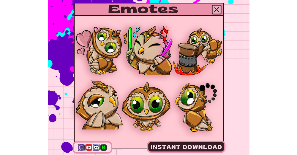 Cute gold Owl emotes for Twitch, Kick, Discord, and YouTube