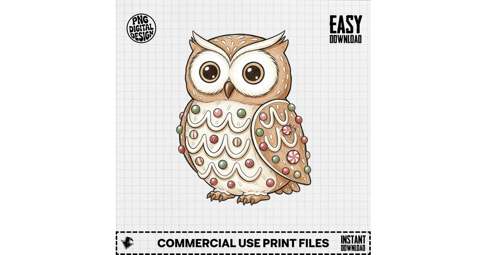Gingerbread Owl PNG, Christmas Owl Clipart, Candy Owl Png, Holiday Png, Sublimation Png, Digital Dow