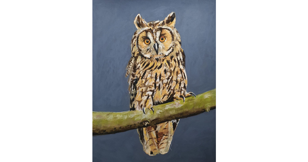 Original pastel drawing of long-eared owl