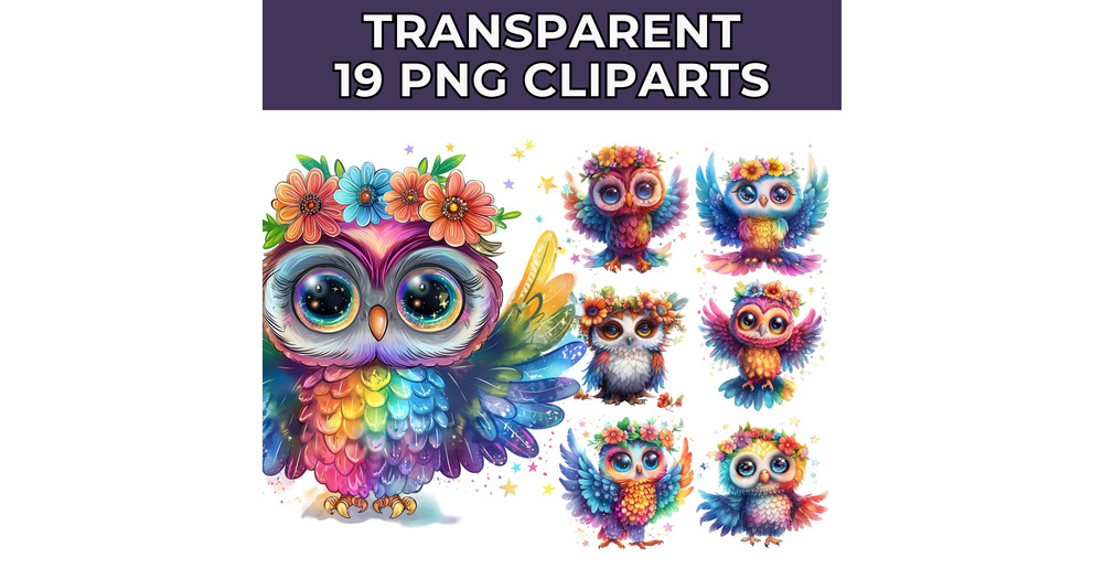 19 Owl Clipart Bundle | Sparkling Owl Sublimation Clipart | Colorful Owls | Owl Artwork | Owl Printa