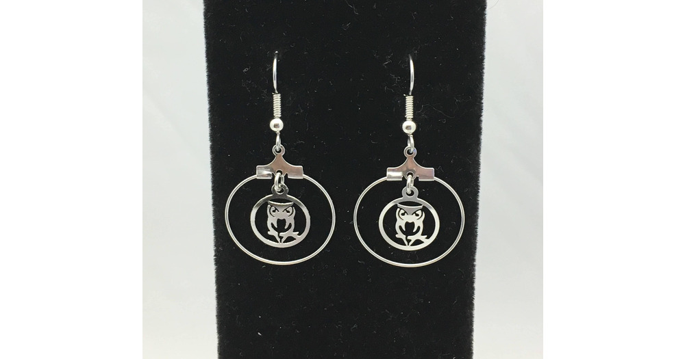 Tiny Owl Stainless Steel Floating Hoop & Dangle Earrings