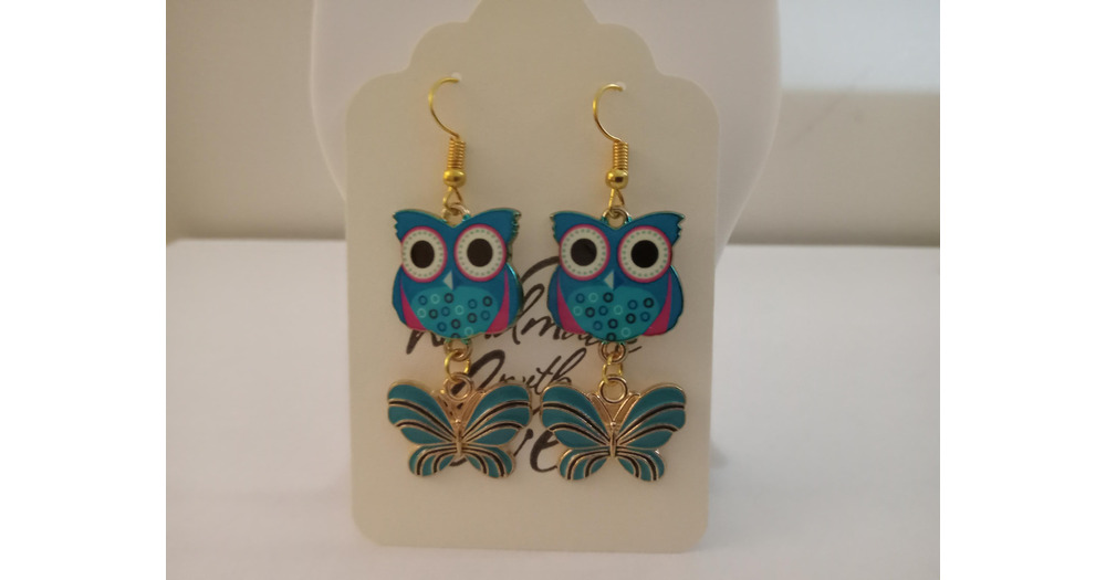 Owl and Butterfly enamel Drop earrings E601 Ready to ship