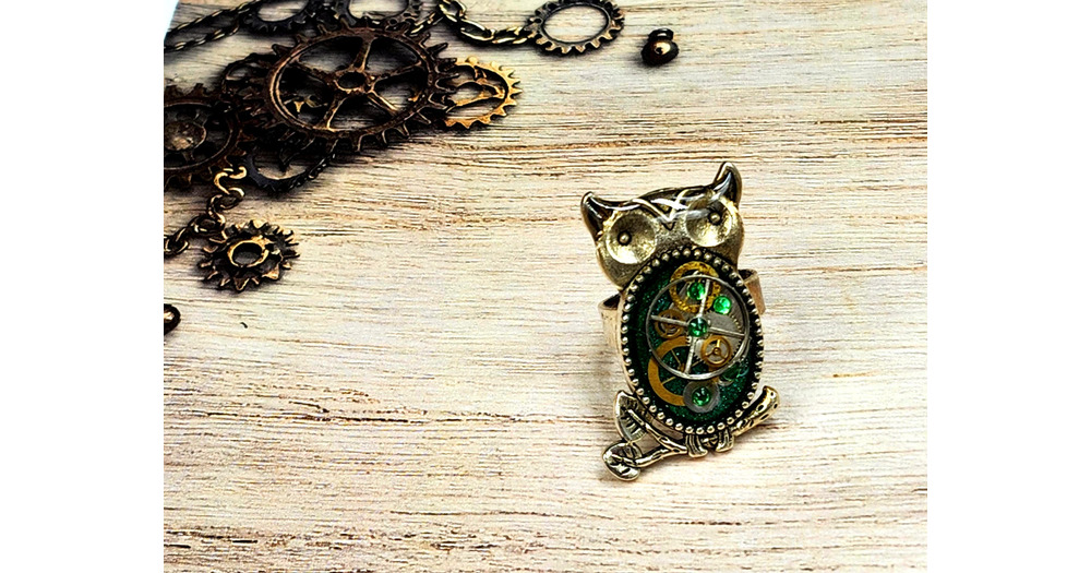 Steampunk Owl Ring | Vintage Style Gothic Jewelry, Adjustable Band