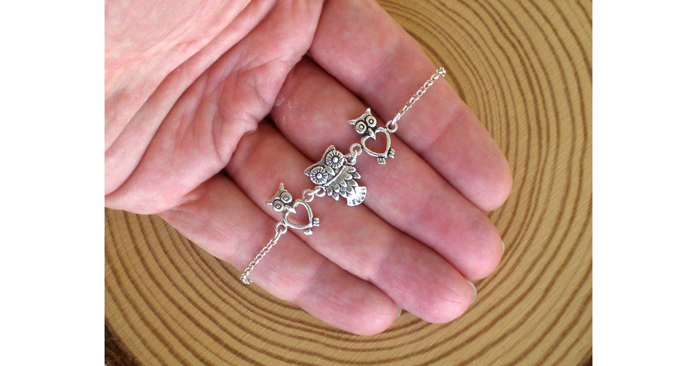 Sterling silver owl bracelet, Silver bracelet, Lucky charm, Owl bracelet, Adjustable bracelet, Amule
