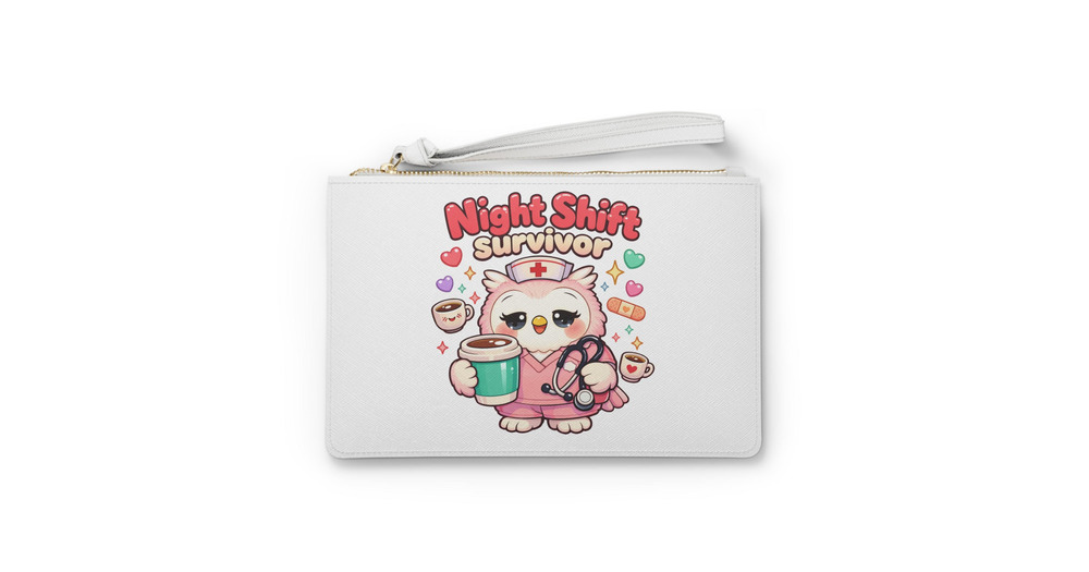 Night Shift Survivor Nurse Owl Clutch Bag | Personalized Wristlet