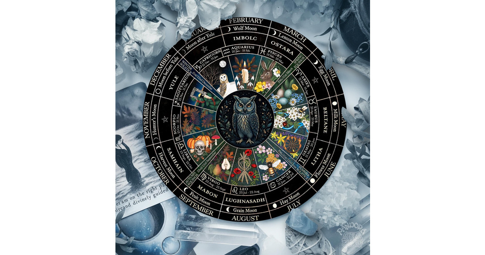 Owl Wheel of the Year Wooden Art, Pagan Altar Piece, Witchcraft Home Accent