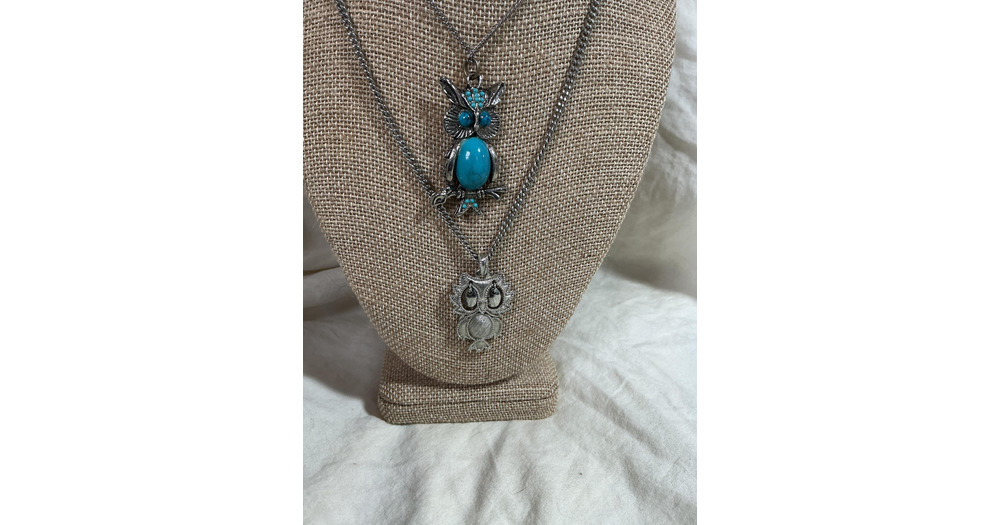 SALE ! 2 Vintage Owl Pendant Necklaces - 1960’s - 1970’s - lot - jewelry - estate