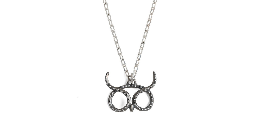 Oxidized Sterling Silver Owl Necklace, Diamond Accent, Handmade