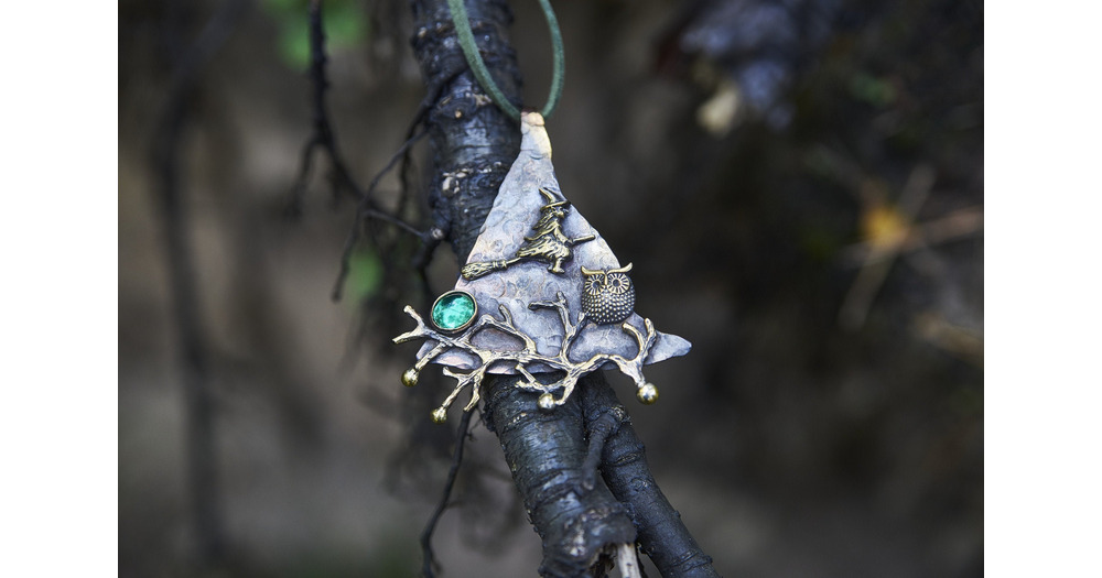 Handmade Bronze Witch & Owl Pendant Necklace: Gothic Fantasy Jewelry