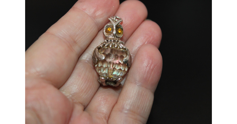 A Large Rare Vintage Solid Silver Owl Charm/Pendant With A Faceted Crystal Body And Amber Glass Eyes