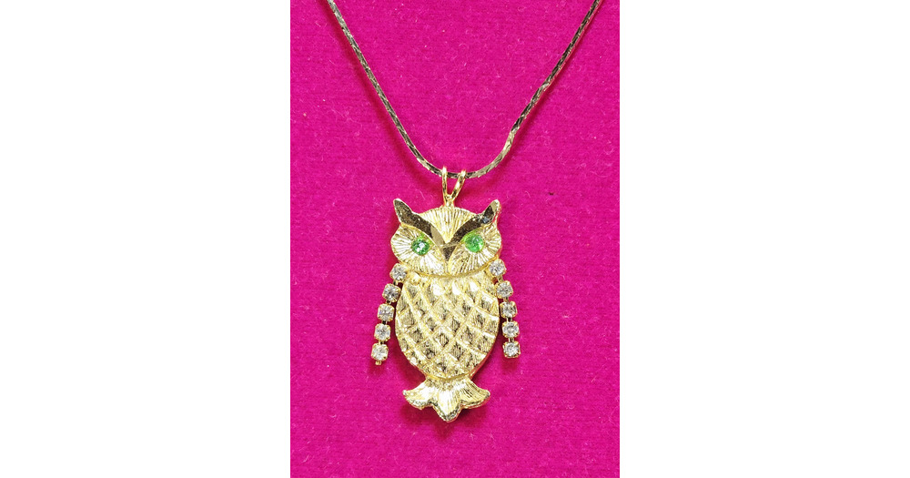 Vintage Gold Tone Owl Rhinestone Pendant Necklace