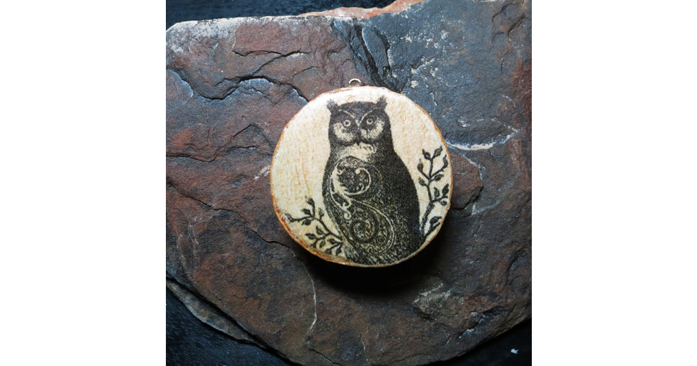 Owl design birch wood pendant necklace - One of a kind. Free Gift Wrapping.