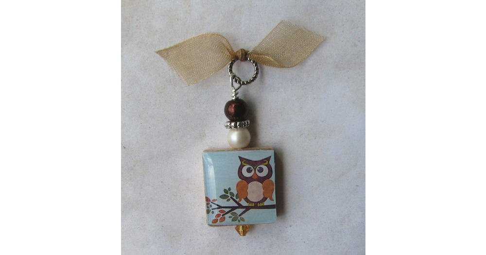 Owl on a Branch Autumn Charm Pendant
