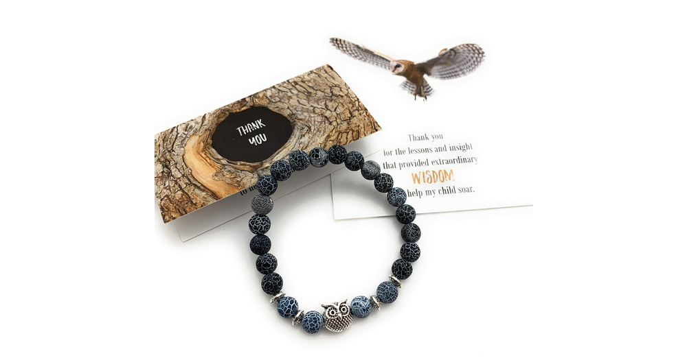 Owl Blue Effloresce Agate Stretch Bracelet | Thank You Teacher Appreciation Card