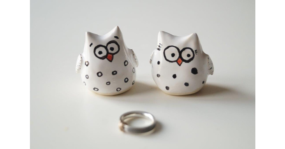 Handmade Ceramic Owl Couple Figurines: Wedding Cake Topper