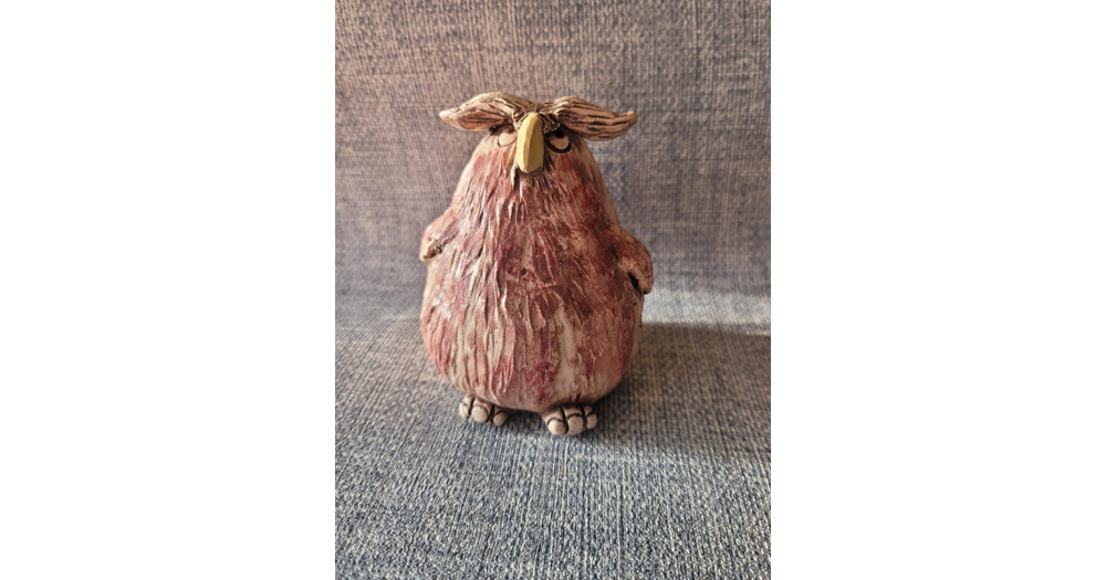Ceramic Owl Figurine, Quirky, coloured with coloured glazes.