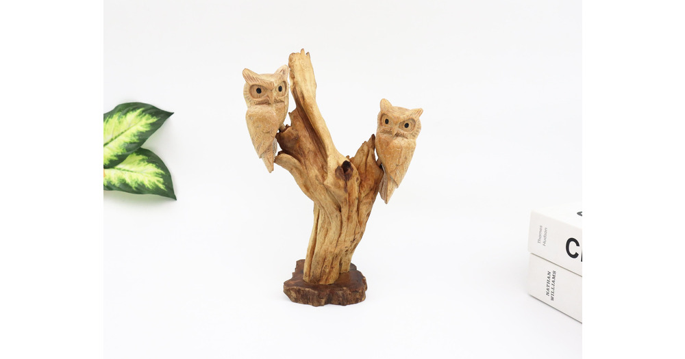 Wooden Couple Owl Sculpture, Hand Carved Owl Figurine, Rustic Woodland Decor, Driftwood Art, Nature