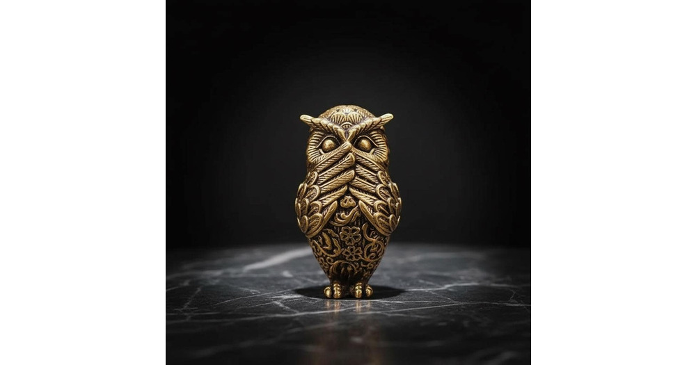 Solid Brass Owl Figurine Speak No Evil Retro Style Pendant Keychain Charm Miniature Bird Statue Desk