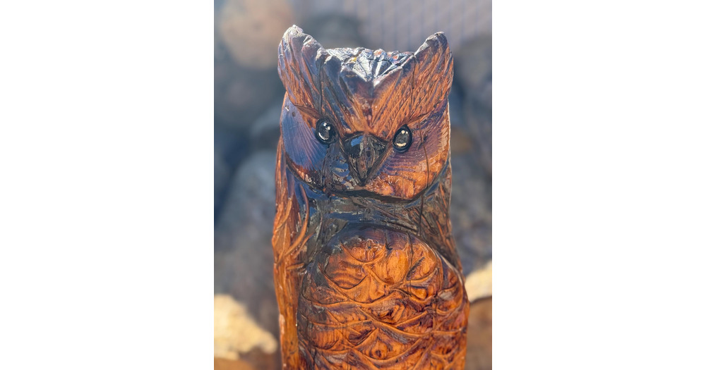 2.5ft Horned Owl Chainsaw Carving