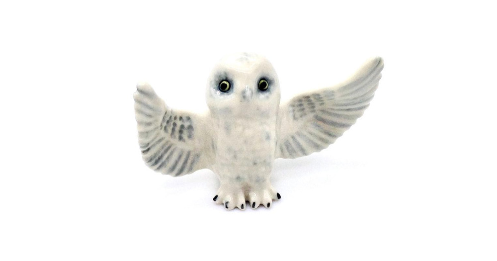 Miniature Ceramic Owl Bird Night Animal Little Grey White Figurine Small Statue Tiny Decoration Hand