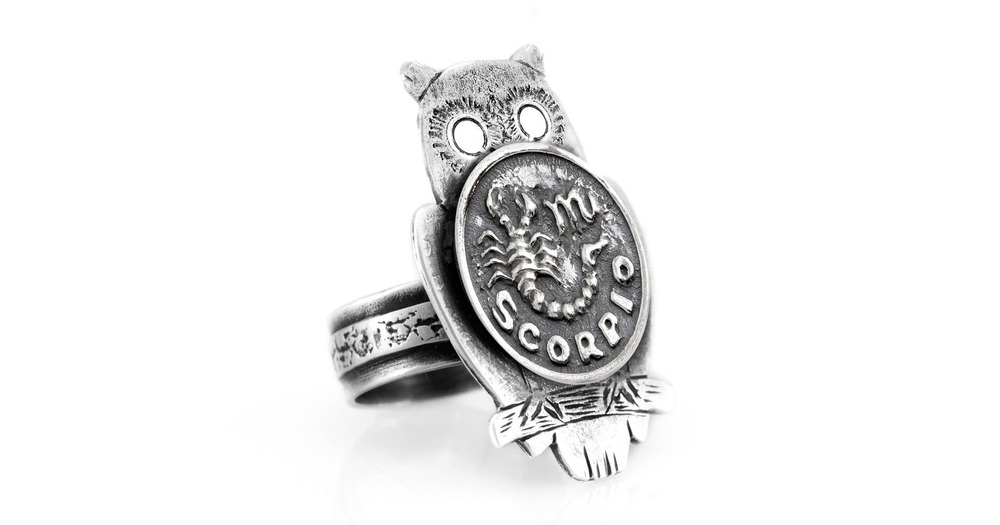 Sterling Silver Scorpio Owl Ring: Zodiac Coin Medallion