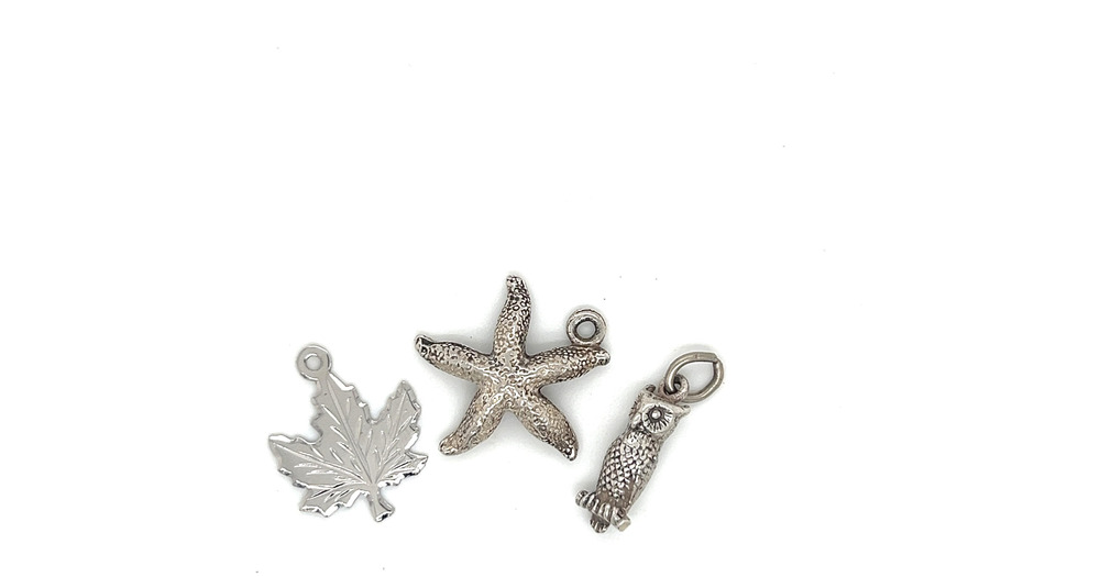 Nature Charms, Starfish, Maple Leaf, Owl Sterling Silver