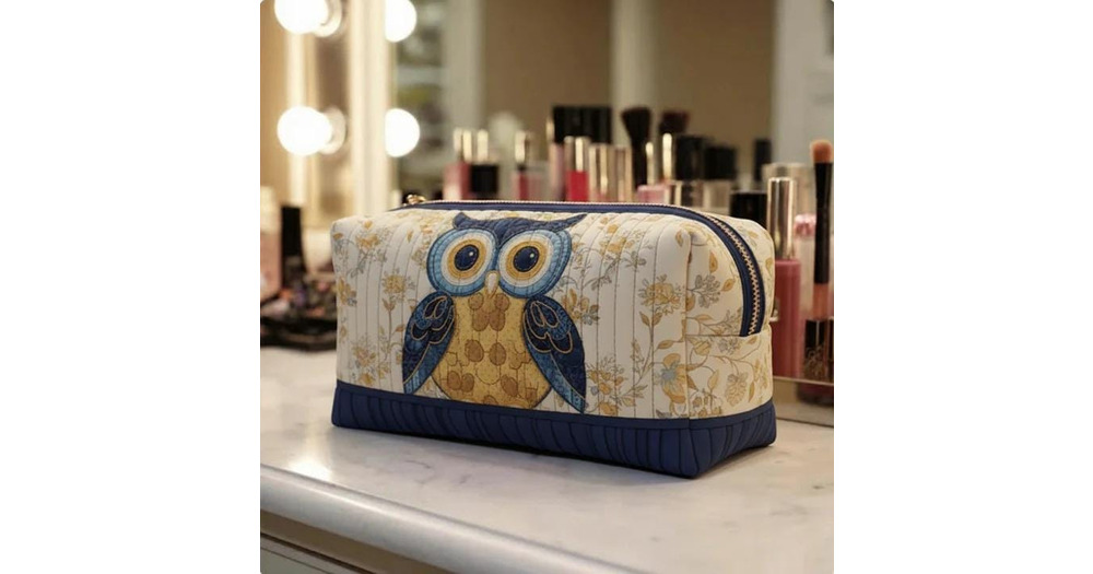 Vintage Owl Quilted Makeup Bag, Cute Owl Cosmetic Pouch, Travel Toiletry Organizer, Botanical Makeup