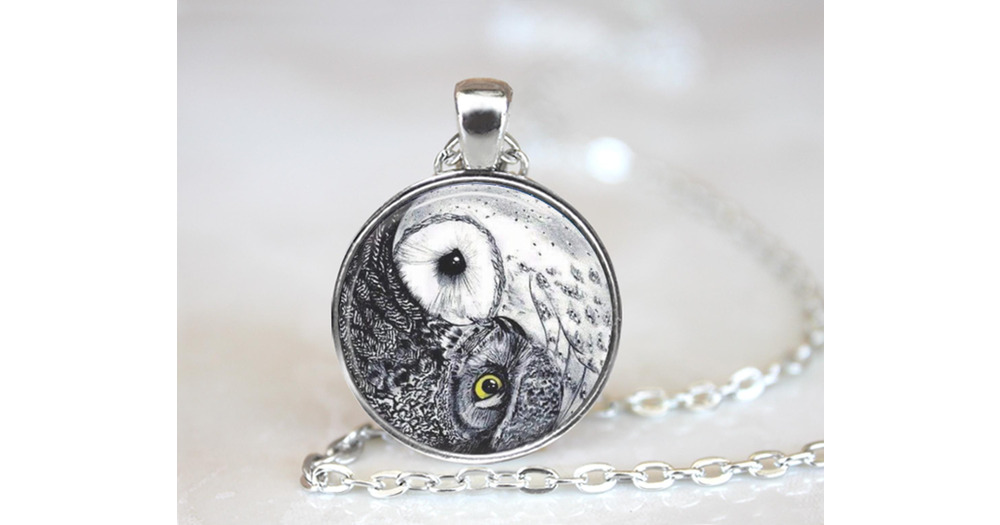 Owl Yin Yang Pendant Necklace – Black White Art, Symbolism Jewelry (25mm)