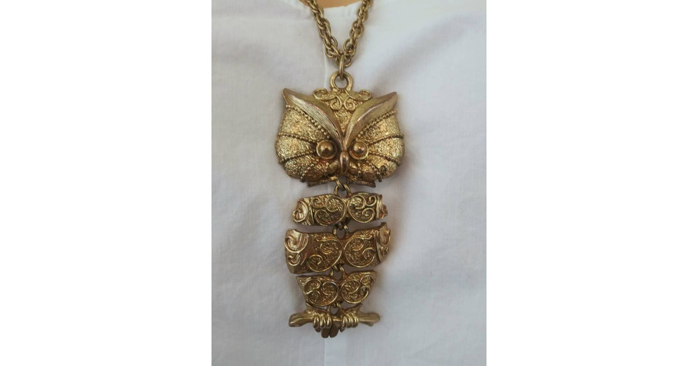 Vintage JJ 1970's articulated owl necklace / seventies chain link owl