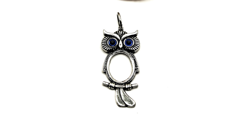 Owl Goddess Athena Silver 925 Pendant with Evil Eye