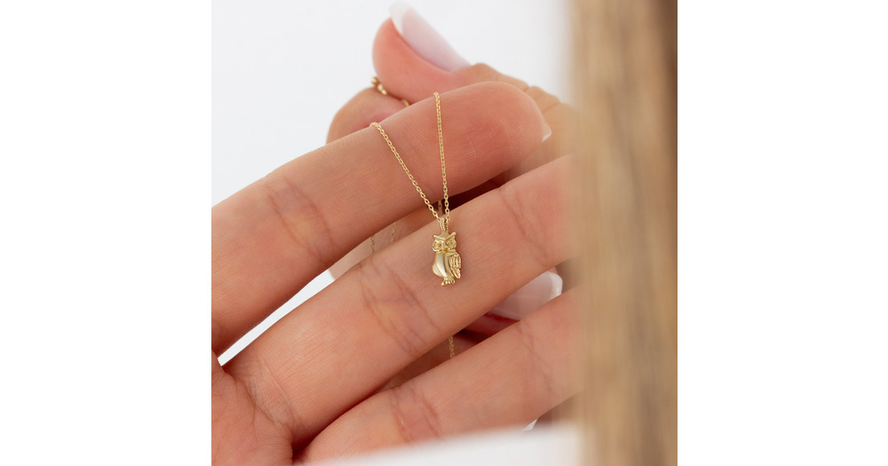 14K Solid Gold Owl Necklace • Minimalist Owl Jewelry For Women • Small Owl Pendant Necklac