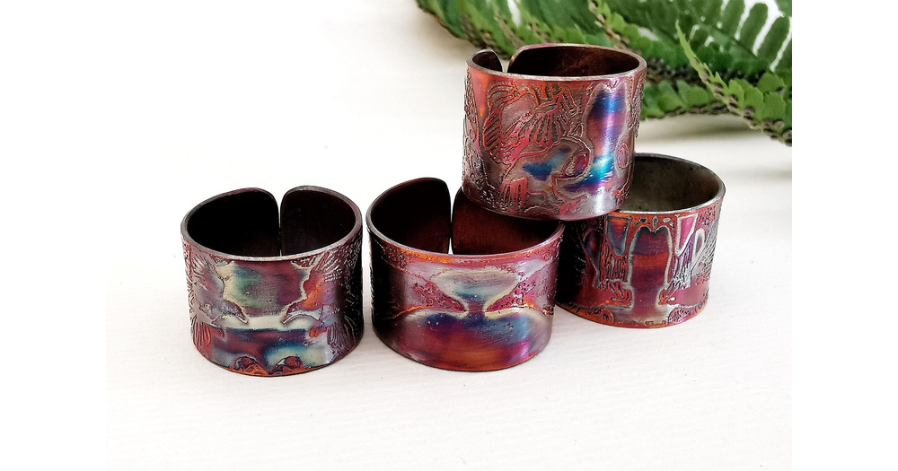 Etched Copper Owl, Magpie, Raven, or Rook Ring, various adjustable sizes