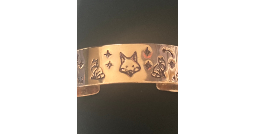 FOX Head and Fox-Owls-Wolfs on Sides Hand Crafted Solid Copper Bracelet -Stars & Shooting Stars