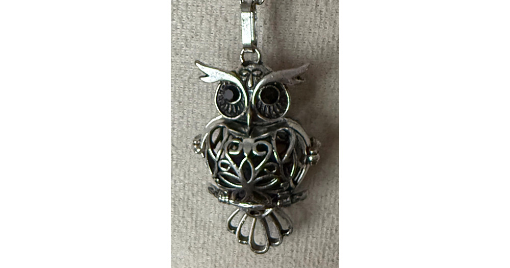 Ornate Owl Locket Necklace: Lava Stone Diffuser Pendant