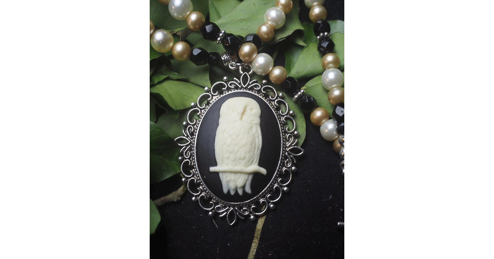 The Wise Old Owl - Cameo & Pearl Necklace with Vintage Beads - Witchcraft, Ecowitch