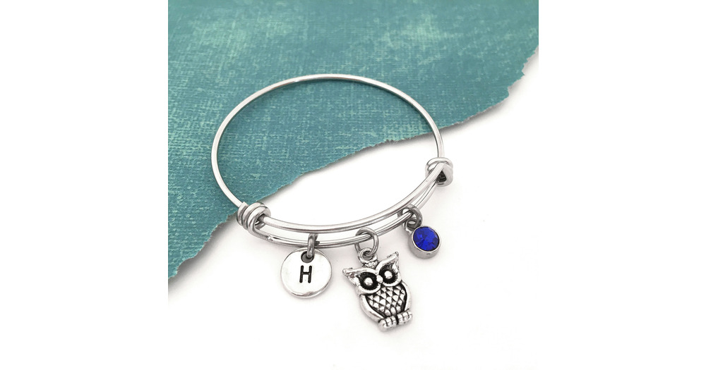 Owl Bangle, Little Girl Bangle, Owl Bracelet, Owl Charm Bracelet, Little Girl Jewelry, Owl Gifts for