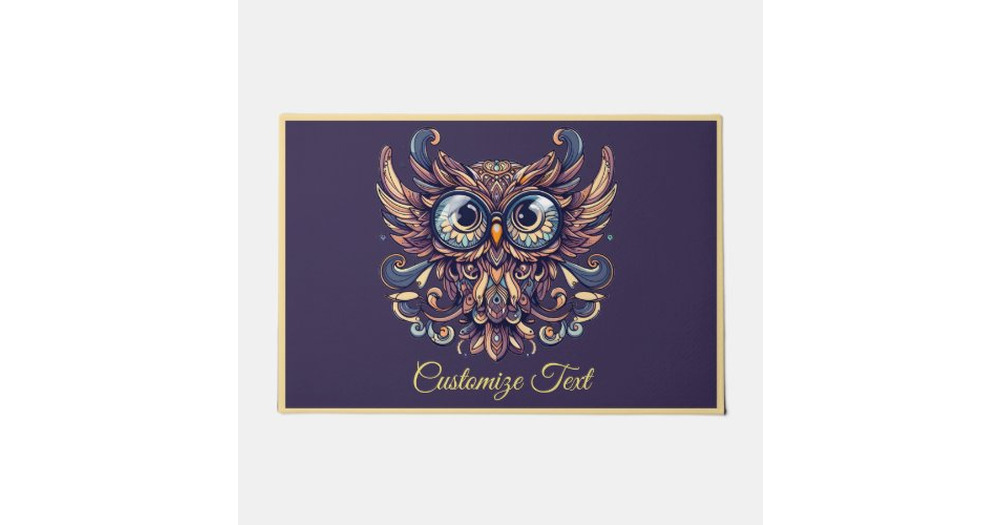 Elegant Blue & Gold Wise Owl Personalized  Doormat