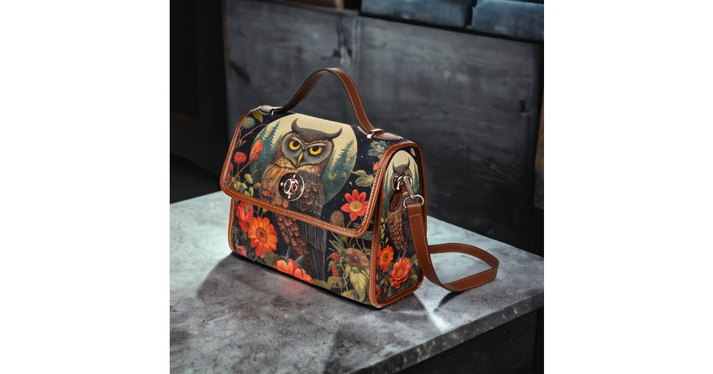 Dark Cottage Goth Owl and Dark Garden Satchel, Dark Cottagecore Owl purse, Canvas Wiccan Owl Dark Wi