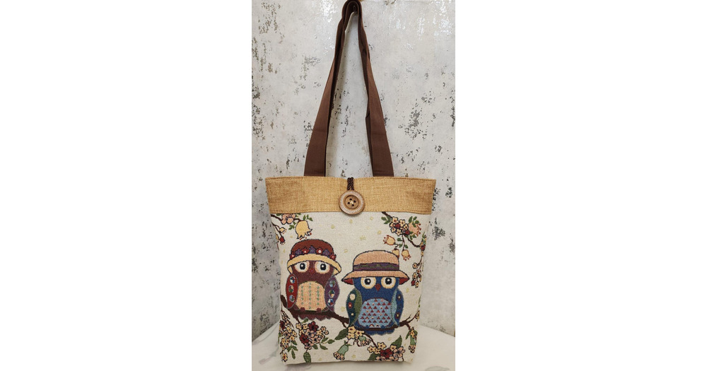 Handmade Jute Tote Bag 13x15 Inch, Owl Print Shoulder Bag, Eco Friendly Shopping Bag, Large Fabric T