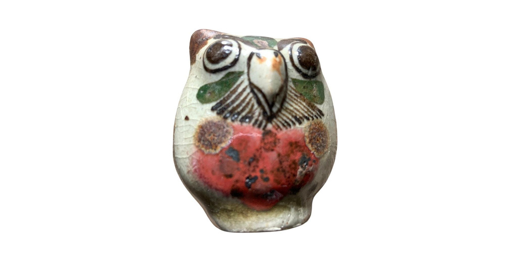 Vintage 70s Miniature  Tonala Pottery Owl Signed  Beige Blue Brown Approx 2"