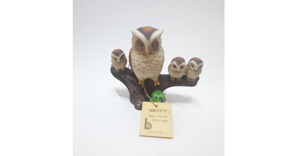Vintage Brinn's Hand Crafted Porcelains Owl And Owl Babies