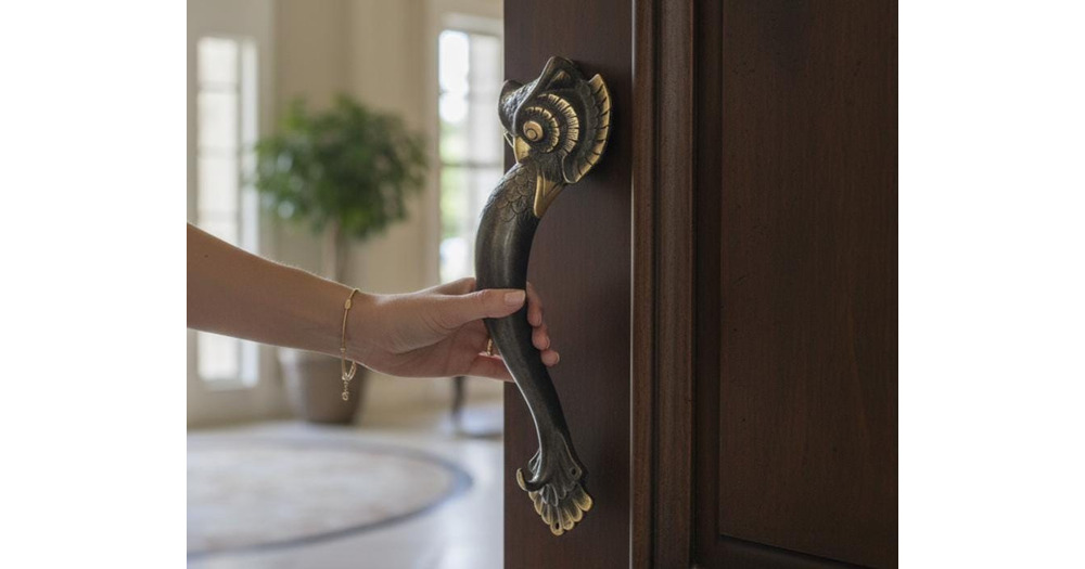 Owl Door Handle 14 Inch / 35 cm, Balinese Style, Room Decor, Birthday Gift, Holiday Decor, Housewarm