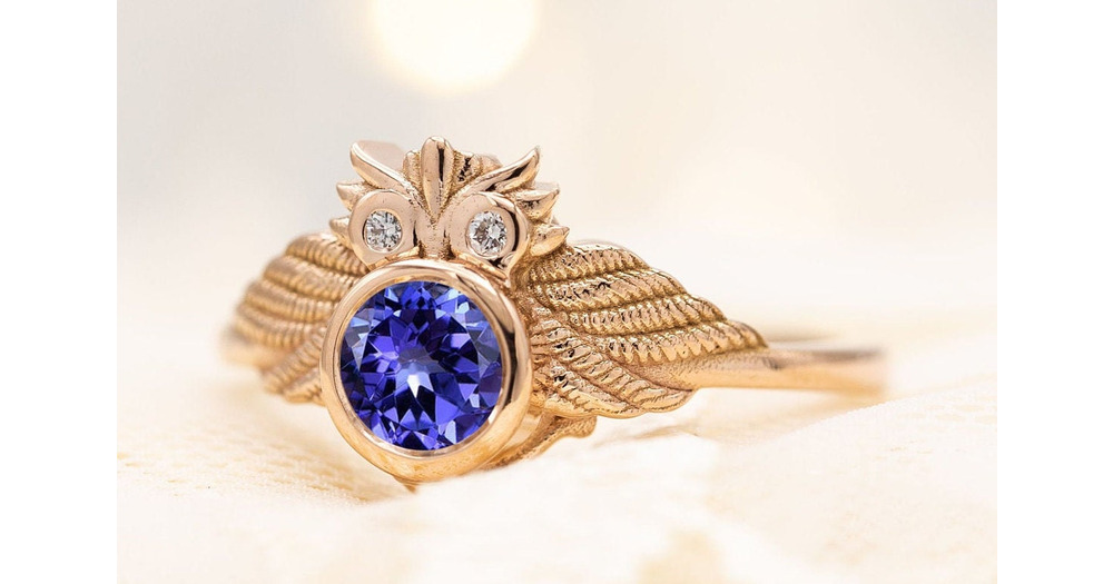 Art Deco Owl Blue Tanzanite Wedding Ring Vintage Tanzanite Engagement Ring Art Deco Tanzanite Bridal